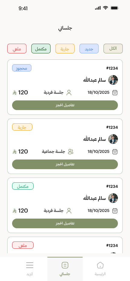 نعم، يمكنك إلغاء أو تعديل الحجز قبل موعد الجلسة بمدة محددة يوضحها التطبيق، مع استرجاع المبلغ وفق سياسة الإلغاء.