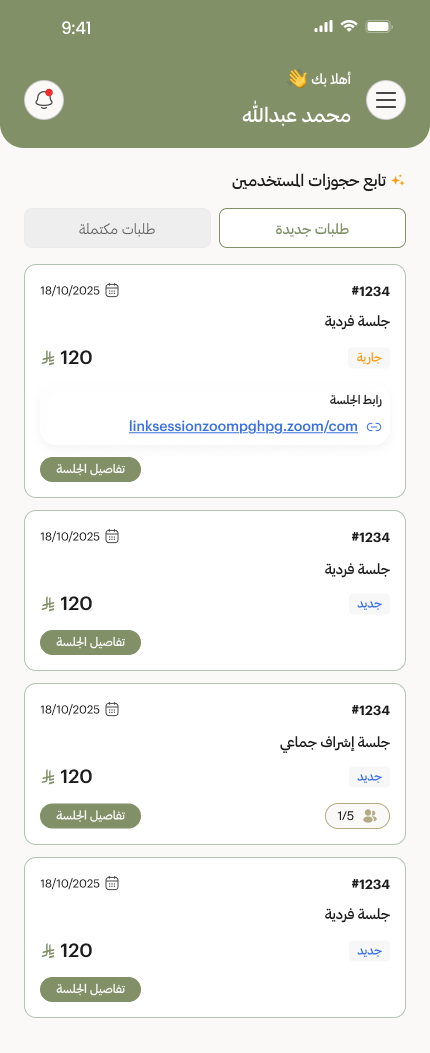 يوجد في التطبيق جلسات مجانية وأخرى مدفوعة حسب نوع الخدمة والمختص. تقدر تشوف الأسعار قبل الحجز بكل وضوح.
